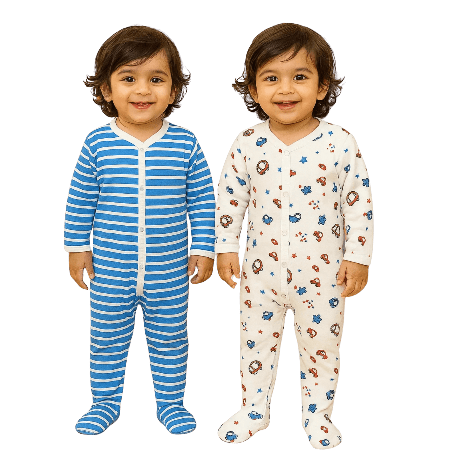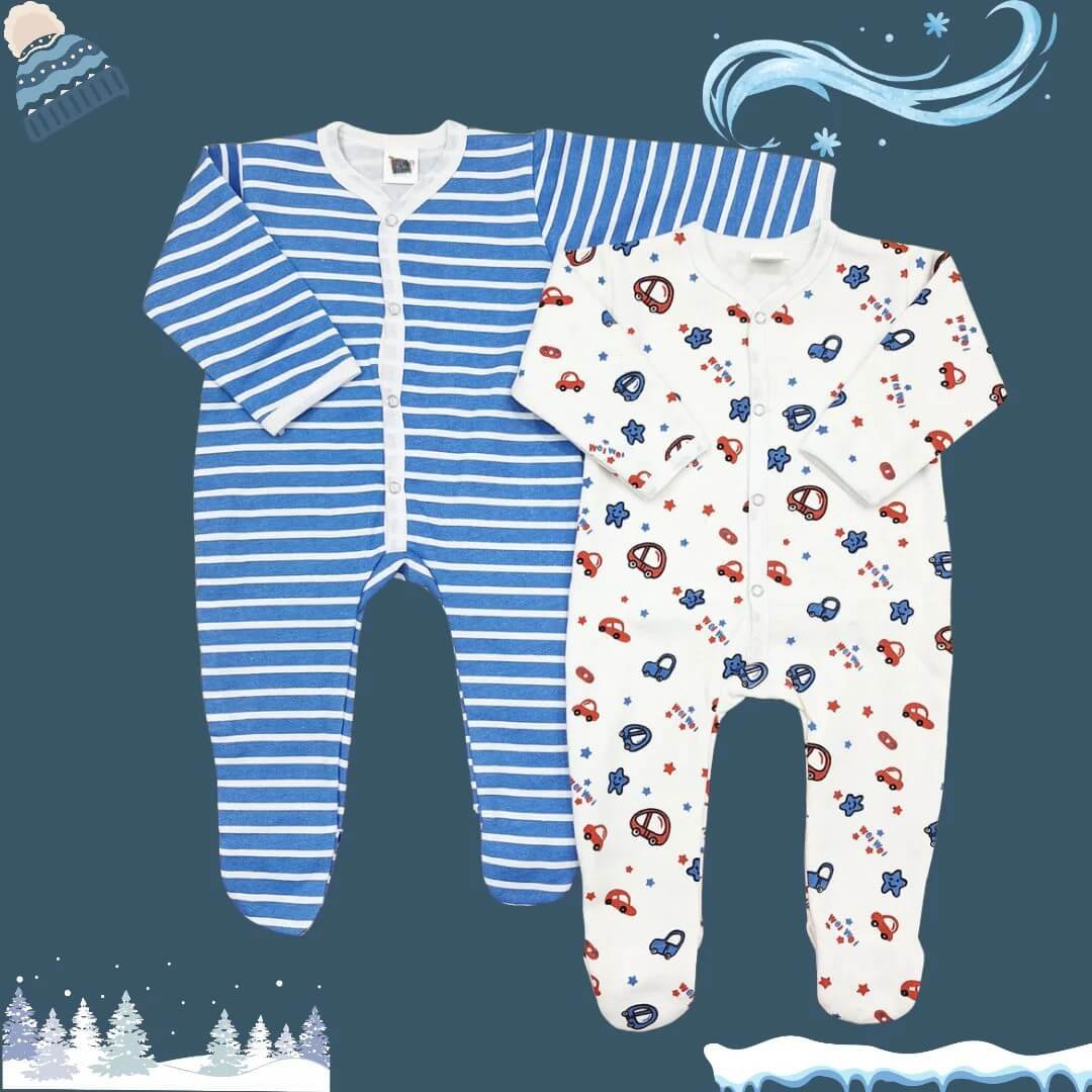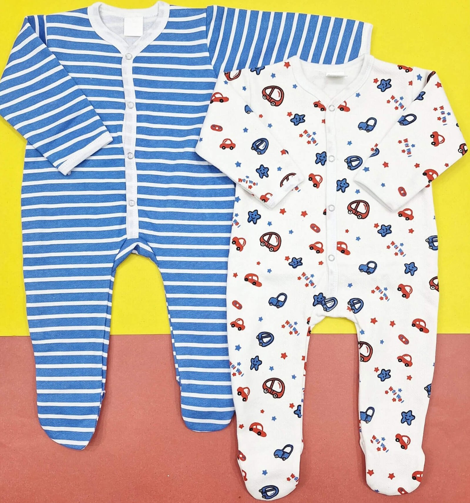 Pack of 2 Rompers – Fleece – Blue – Stripes & Cars